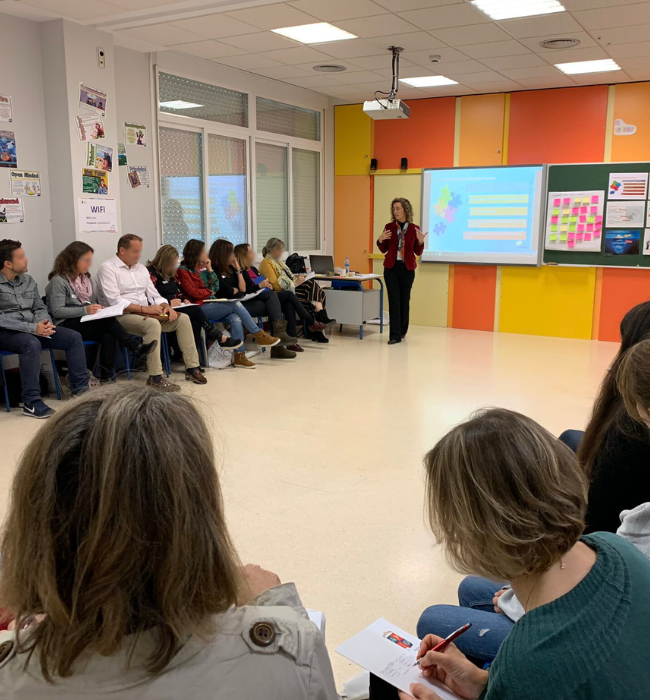 Formaciones prácticas y vivenciales, acompañamiento al claustro y sesiones de mentoring para mejorar el clima del aula, ayudar al alumnado a desarrollar habilidades socioemocionales fundamentales para la vida, mejorar la relación con las familias, reducir conflictos y desarrollar liderazgo positivo en los equipos.